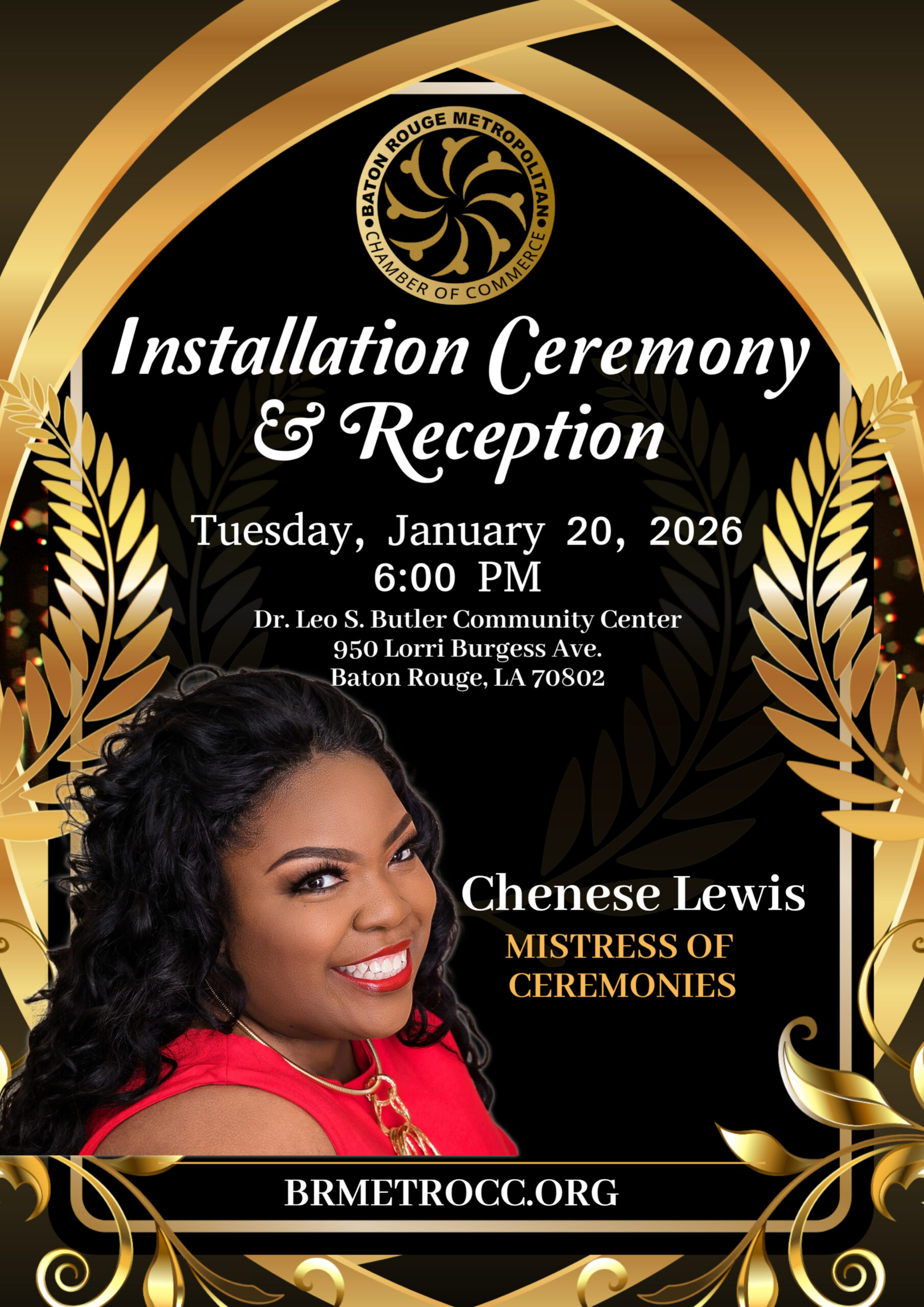 Chenese Lewis will serve as Mistress of Ceremonies for the Baton Rouge Metropolitan Chamber of Commerce’s Installation Ceremony & Reception on Tuesday, January 20th. The event will celebrate the installation of the incoming Board and recognize the leadership, vision, and commitment shaping the future of Baton Rouge’s business community. Chenese is honored to be part of this milestone occasion alongside civic, corporate, and community leaders.